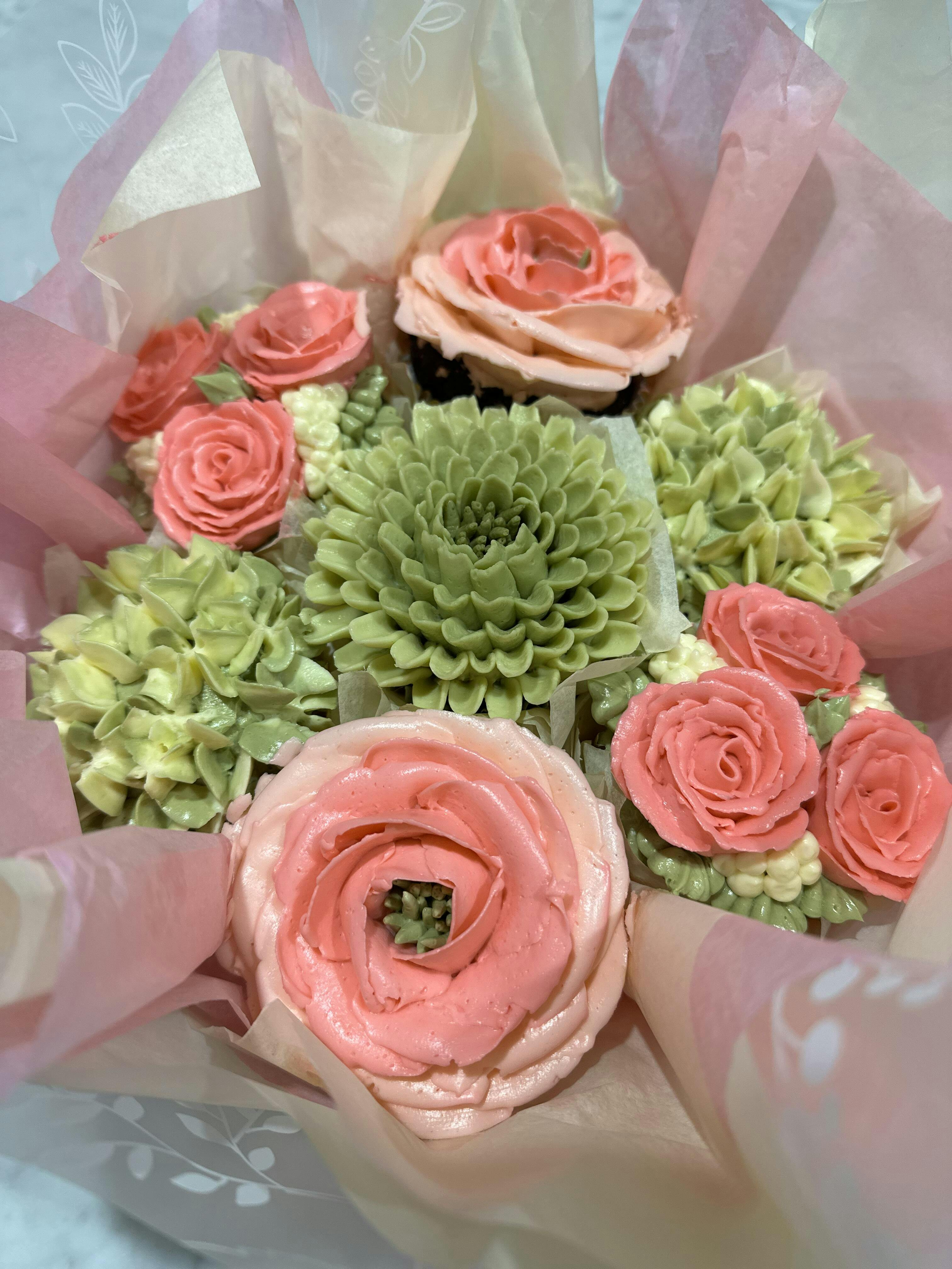 Our Specially Handmade Floral Cupcake Bouquet now available in Melbourne, Australia. Flowers are made of buttercream.